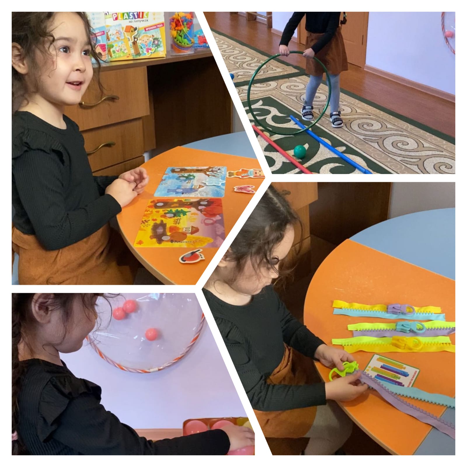 Были выполнены задания на мелкую моторику, на мышление, на переключение внимание, на цветовое восприятие, на развитие логического мышление, памяти, воображение, речи и на координацию движение.